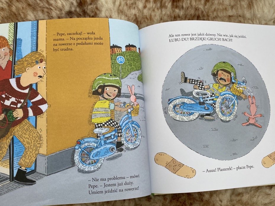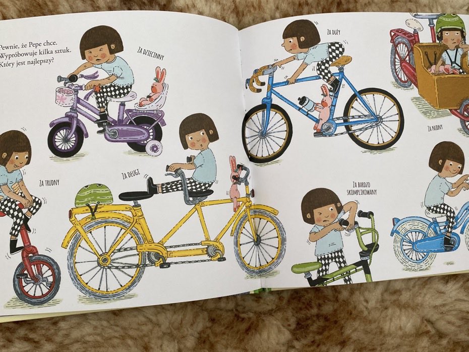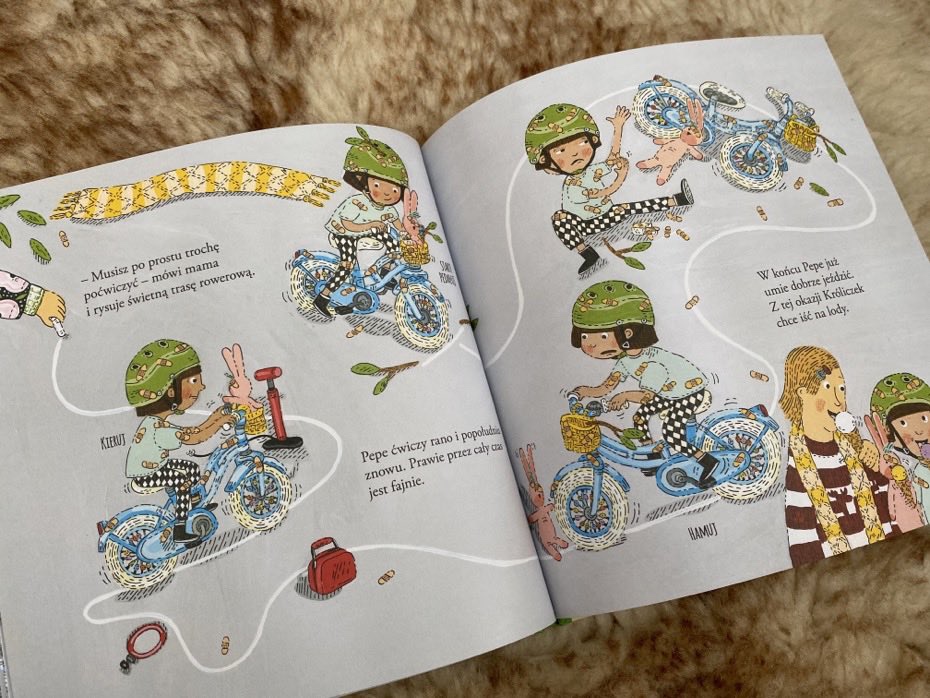 Nauka jazdy na rowerze to świetna zabawa. Dłuższe, cieplejsze dni zbliżającej się wiosny, będą doskonałym czasem na rozpoczęcie ćwiczeń. „Pepe jeździ na rowerze” z pewnością doda wigoru niejednemu zapalonemu początkującemu. Jest to krótka, edukacyjna i zabawna książeczka o nauce jazdy na rowerze, która z pewnością spodoba się zarówno chłopcom, jak i dziewczynkom.