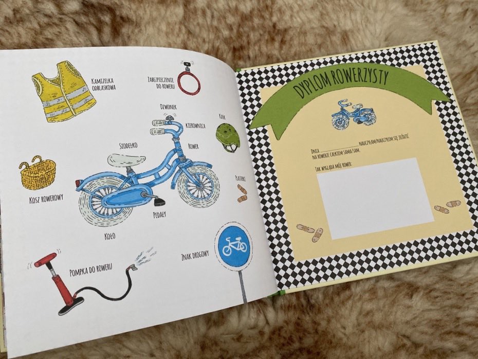 Dodatkową atrakcją jest pamiątkowy dyplom na końcu książki, do wypełnienia, gdy dziecko nauczy się samodzielnie jeździć na rowerze.