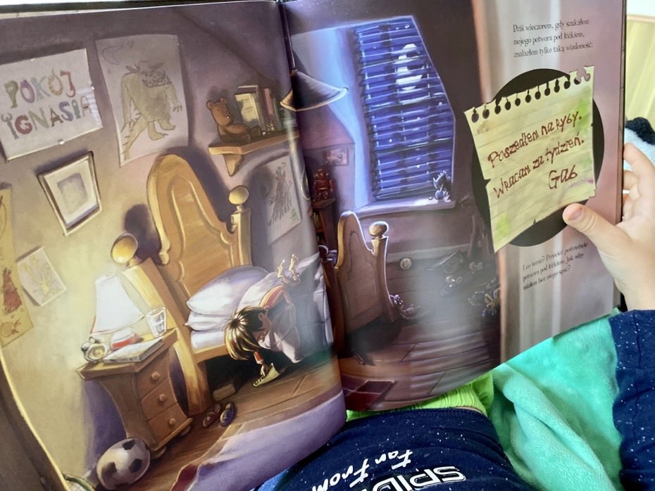 Narratorem książki i zarazem głównym jej bohaterem jest kilkuletni chłopiec. Pewnej nocy, gdy Ignaś szuka pod łóżkiem swojego potwora – Gaba, zamiast niego znajduje od niego notatkę: „Poszedłem na ryby. Wracam za tydzień”. Chłopiec wie, że bez znajomych nocnych przerażeń Gaba nie ma szansy na dobry sen.