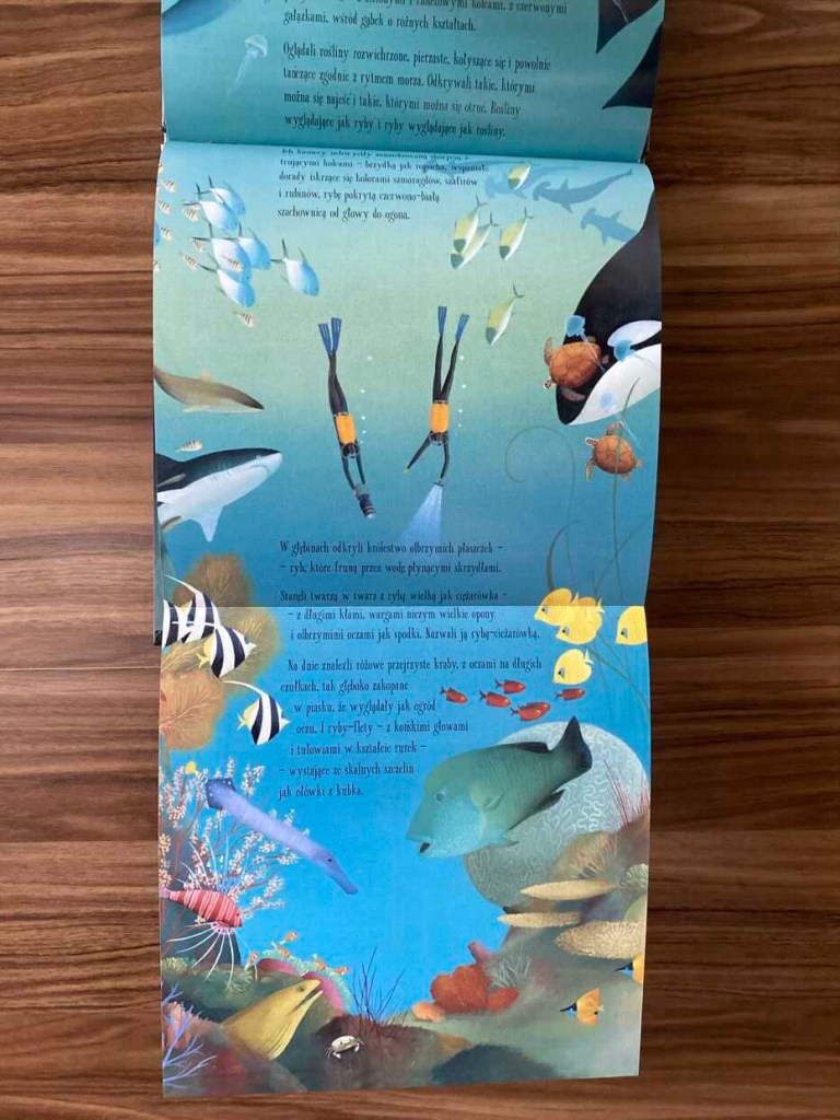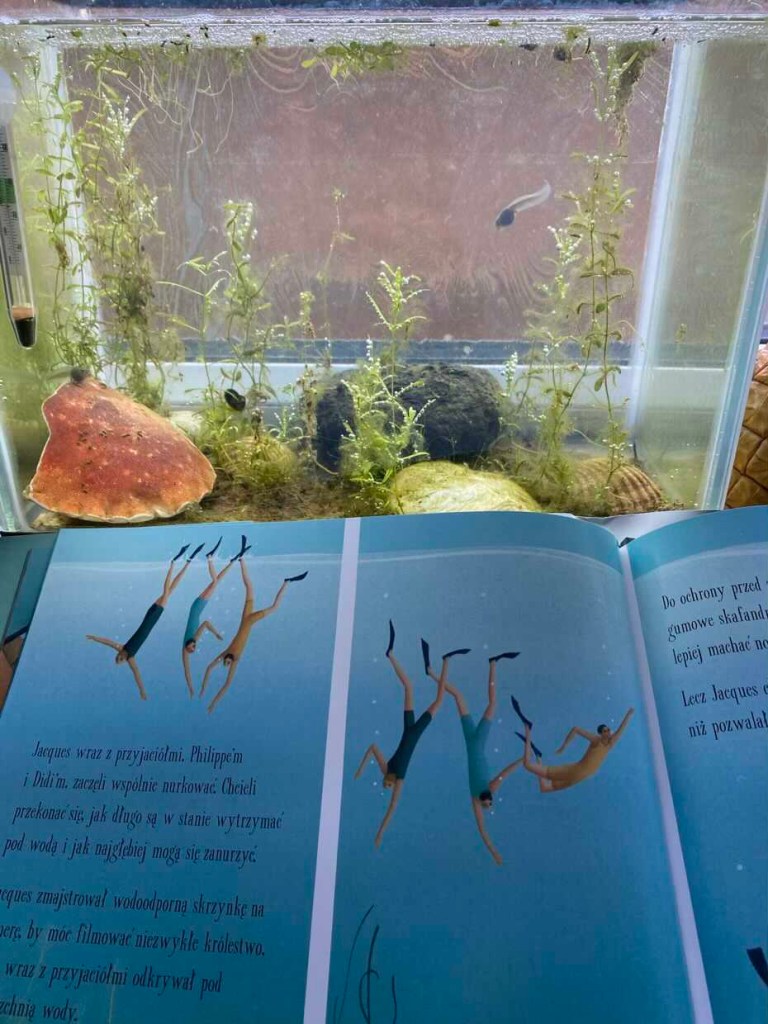 „Podwodny świat” to nie tylko biografia samego Jacques’a Cousteau’e, ale także przepięknie ilustrowana opowieść o jego marzeniach i dążeniu do ich realizacji, którym poświęcił całe życie. Przy okazji zarażał innych swoją pasją. Lektura może na nowo pobudzić zainteresowanie do odkrywania czegoś nieznanego. Jest to wspaniała i bardzo inspirująca książka dla dzieci i dorosłych. Bardzo polecam.