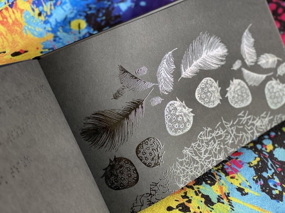 Tekst książki zawiera tekst pisany zarówno tradycyjnie, jak i za pomocą Braille’a. Z czarnych stron wyłaniają się wypukłe ilustracje, umożliwiając czytelnikowi sensoryczne poznanie treści. Czarne obrazki są wypukłe, więc można ich dotknąć, a widoczne są tylko, gdy światło pada bezpośrednio na nie. Czytając tę opowieść, dziecko zaczyna widzieć więcej, a jego umysł i zmysły otwierają się na nowe doświadczenia.
