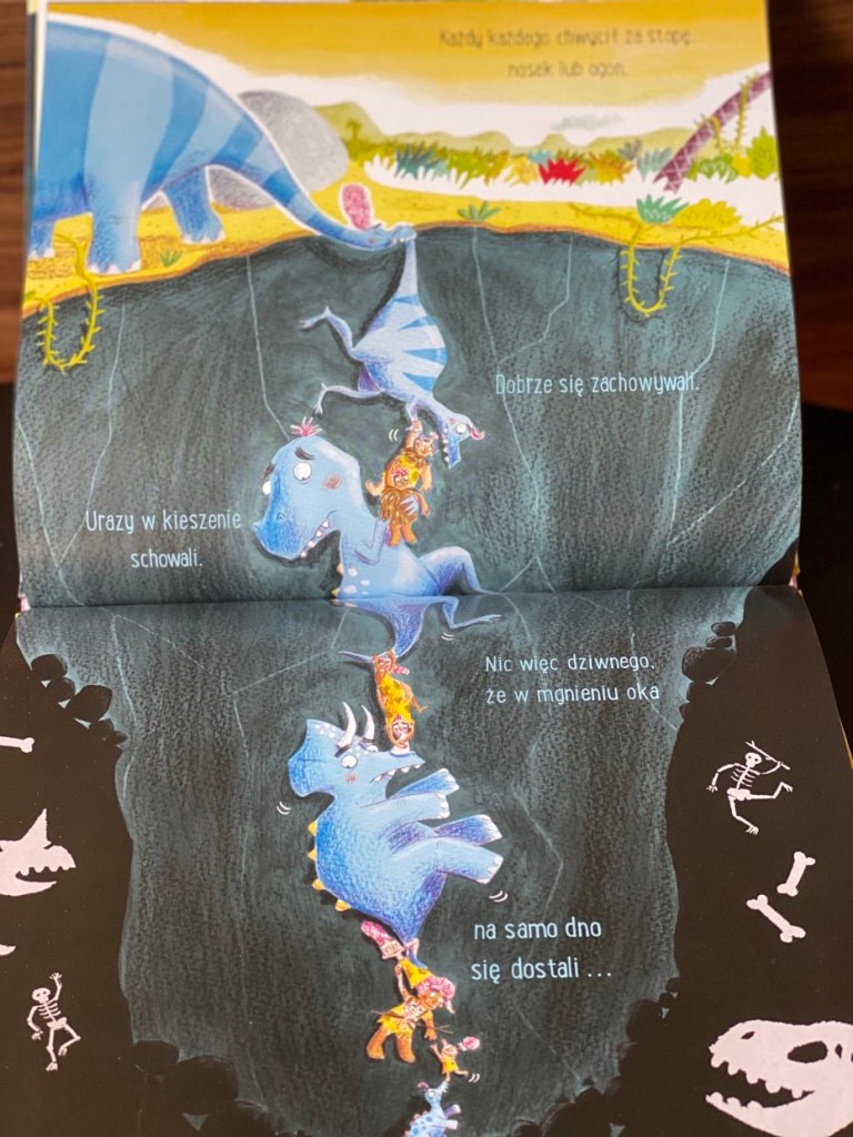 „Dinozaury kontra Ludzie” to przygodowa książka o przyjaźni, solidarności, życiu w zgodzie i o akceptacji innych. Długo czekaliśmy z Adasiem na jakąś nowość z dinozaurami w roli głównej i przyznam, że książeczka przypadła nam do gustu. Polecamy.