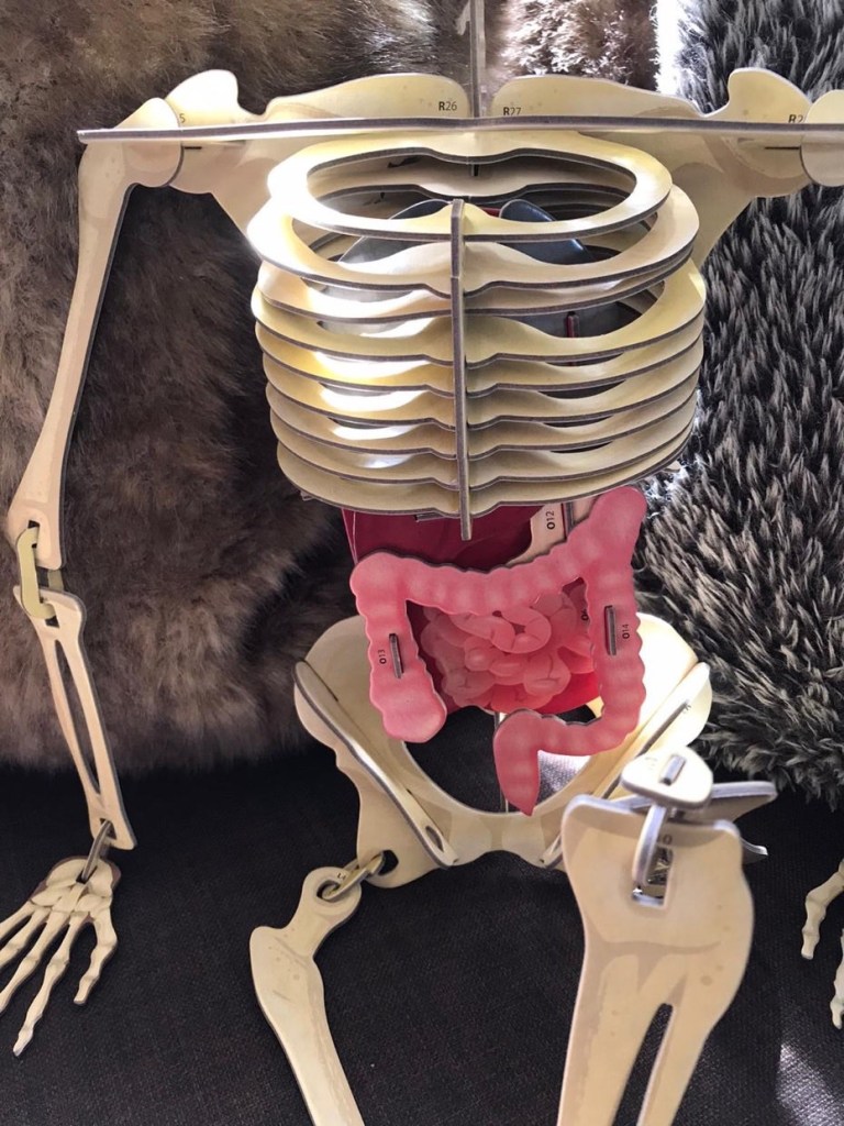 Poza 30-stronicową książką czytelnicy znajdą 49-elementowy model ciała człowieka do złożenia. Do wykonania nie potrzeba kleju ani nożyczek. Cała zabawa polega na połączeniu ze sobą dwóch identycznych symboli. Dziecko zdobywa wiedzę w łatwy sposób, jednocześnie rozwijając swoje umiejętności logicznego myślenia i obserwacji. Szkielet ma wysokość 75 cm i może stać się piękną ozdobą dziecięcego pokoju.