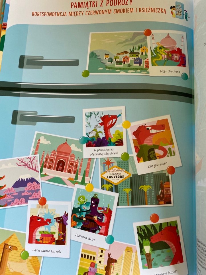 „W poszukiwaniu Czerwonego Smoka” to książka napisana z przymrużeniem oka i wypełniona wielkimi ilustracjami, na których roi się od szczegółów. Jeśli zainteresowała Was ta pozycja, z pewnością podobnie będziecie się bawić w poszukiwaniu niebieskiej marchewki.
