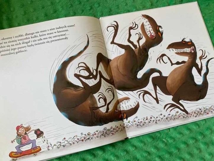 „Strachy na lachy! Jak pokonać dinozaury?” to kolorowa książeczka, którą należy traktować z przymrużeniem oka. Na szczęście, żyjemy w czasach, kiedy dinozaury dawno już wymarły i nie ma potrzeby używania powyższych pomysłów. Niemniej jednak mieliśmy z Adasiem sporo śmiechu i często wracamy do całej serii, dlatego serdecznie ją polecamy.