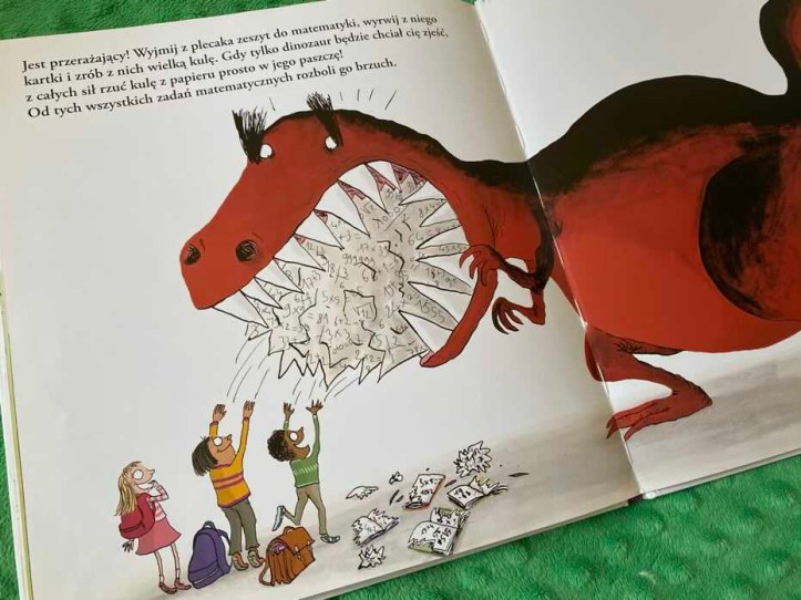 W książeczce dzieci znajdą kilka sposobów na ich przezwyciężenie, zaczynając od wręczania mandatów za złe parkowanie triceratopsowi, poprzez badanie wielkości mózgu dimetrodona, łamanie języka stegozaura na powtarzaniu „w czasie suszy szosa sucha”, a skończywszy na najgroźniejszym tyranozaurze i pomysłowej metodzie zadań matematycznych.