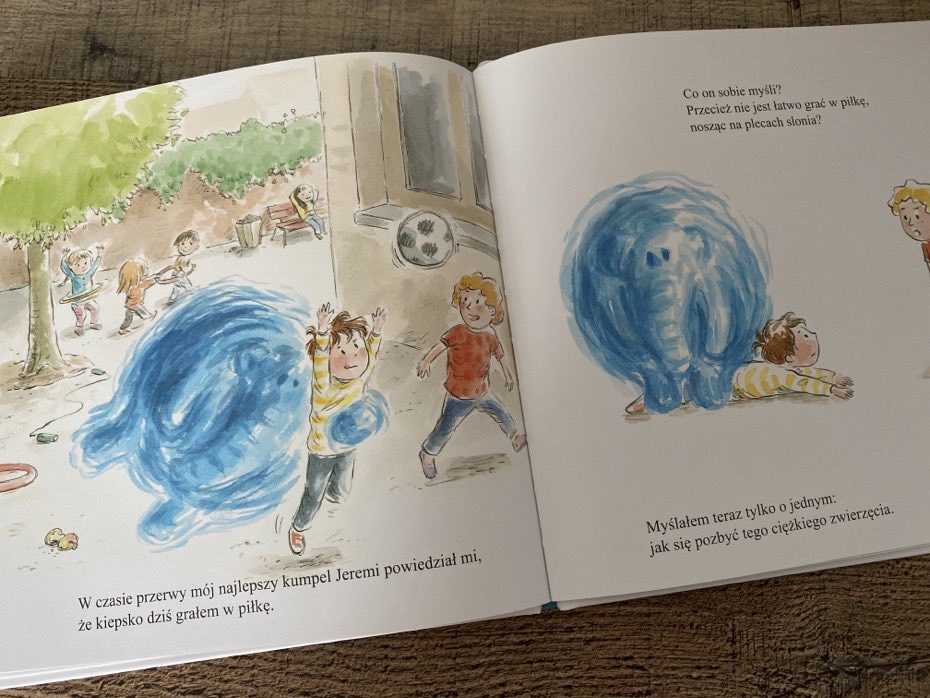 Następnego dnia chłopiec nadal czuł się okropnie. Jego kłamstwo bardzo mu ciążyło, niczym ogromny, niebieski słoń. Nie opuszczało go w szkole, podczas przerwy, po zajęciach lekcyjnych, ani w domu. Łukasz nie mógł normalnie funkcjonować, nic mu nie wychodziło, ani zabawa, ani nauka.