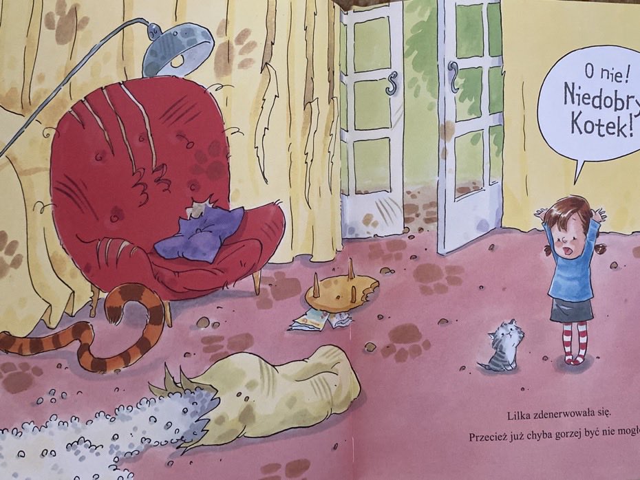 Kto lubi kotki i tygrysy? Dzisiaj mam dla Was książeczkę dla dzieci właśnie z tymi bohaterami. „Niedobry kotek” to zabawna opowieść, w której dziewczynka zostaje obdarowana małym czworonogiem, z którym przeżywa różne przygody.