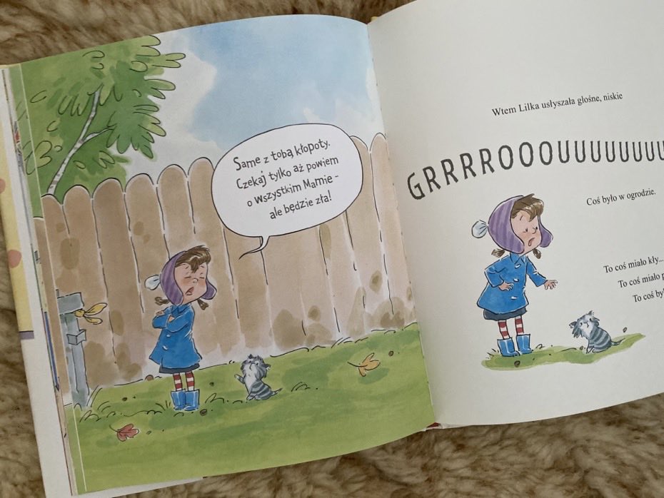 Po południu rozzłoszczona dziewczynka zabiera kotka na ogródek, a sama zaczyna sprzątać dom przed powrotem mamy. Lilka już miała wracać do domu, kiedy szczekający pies z sąsiedztwa grozi jej i kotkowi. Zza płotu wychyla się tygrys, który przypadkowo go odstrasza. Ponownie dziewczynka przypisuje to zachowanie swojemu małemu siwemu kotkowi. Uradowana bohaterka bierze w ramiona wybawiciela i rusza do domu, aby wynagrodzić mu braterski czyn. Nawet nie zauważa, że w jej ogródku pojawili się nowi lokatorzy.