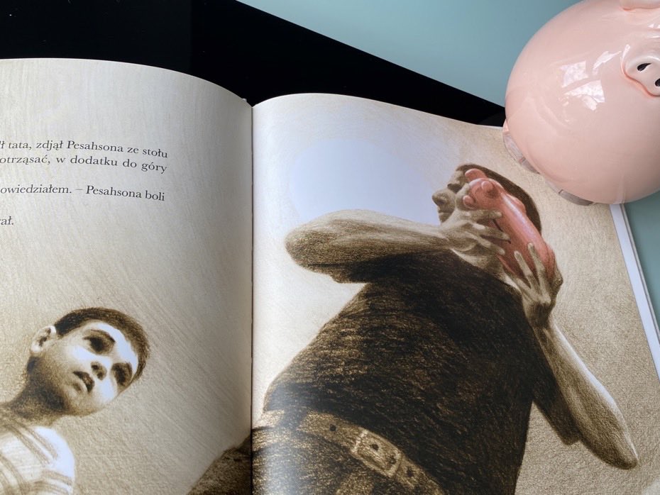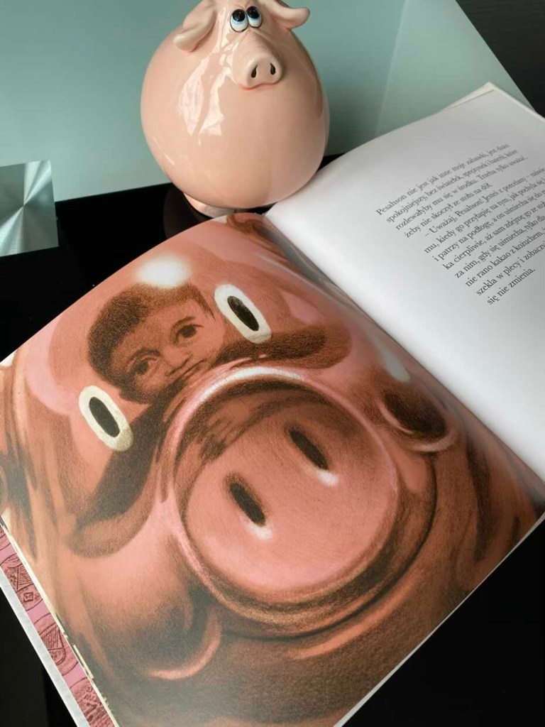 „Stłuc świnkę” to książka opowiadająca o sile przyjaźni pomiędzy chłopcem a porcelanową skarbonką.