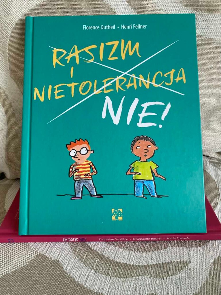 „Rasizm i nietolerancja NIE!” to książeczka pokazująca dzieciom jak być ciekawym, otwartym, tolerancyjnym, a przede wszystkim pomagająca lepiej żyć razem. Uczy czym jest rasizm, pokazując, że każdy ma prawo do szacunku, a tym samym pokazuje, że rasizm jest przestępstwem. Lektura oswaja z uczuciami, które mogą nas dotknąć, gdy spotkamy się z innością. Dla rodziców, nauczycieli i wychowawców może być przydatnym wsparciem w rozmowie. Napisana jest bez zbędnych kontrowersji. Prosta historia z ogromnie ważnym przesłaniem. Dzięki licznym rysunkom i krótkim tekstom książka sprawia, że możemy czytać ją już z młodszymi dziećmi. Według mnie jest to obowiązkowa pozycja w edukacji szkolnej. W serii ukazała się także książka pt. „Zły dotyk NIE!”, o której pisałam tutaj. Polecam.