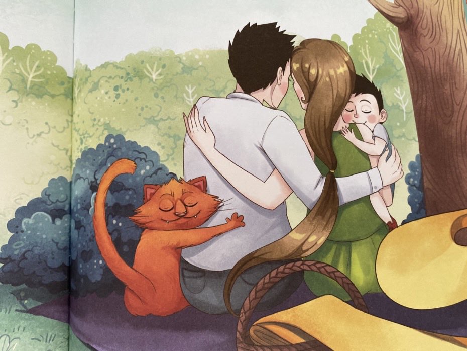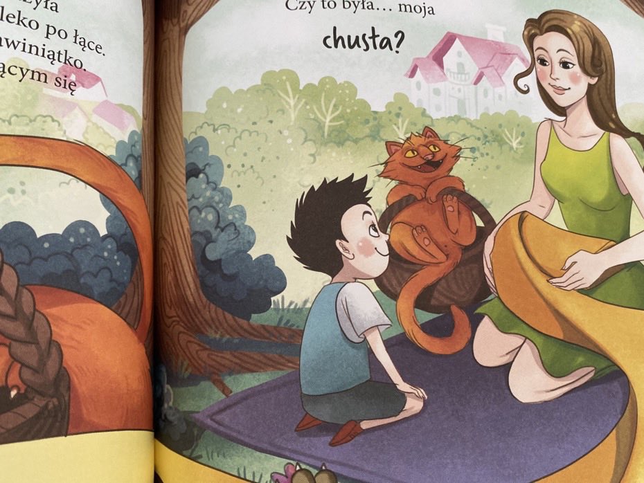 Kiedy już rozłożyli koc, chłopiec zauważył, że mama wyciąga coś dziwnego z koszyka piknikowego. To była chusta, w której Fryderyk był noszony. Chłopczyk czule przytulił się do mamy, a ona zamotała chustę i znowu oboje poczuli niezwykłą bliskość. Ta chwila przywołała lawinę wspomnień.