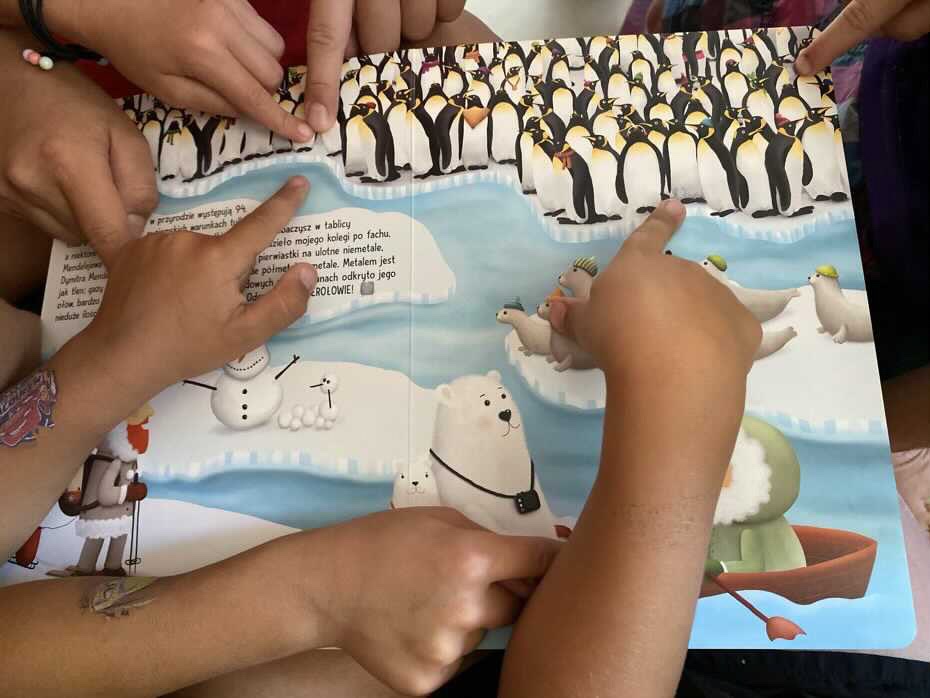 „Pierwiastki są wszędzie… ale czy potrafisz je znaleźć?” spodobała się moim słuchaczom do tego stopnia, że cały dzień wałkowaliśmy lekturę. Na koniec dzieci szukały pierwiastków na czas, tylko po to, aby pokazać kto odszuka je najszybciej. Świetna książka na spostrzegawczość dla najmłodszych. Zachęcam do ściągnięcia tablicy pierwiastków w obrazkach dla dzieci, nad której tłumaczeniem pracowałam po to, aby ułatwiać zapamiętywanie, gdzie można je znaleźć w przyrodzie. Polecam także książkę tej samej autorki pt. „Bakterie są wszędzie… ale czy potrafisz je znaleźć?” wydaną w podobnym stylu o bakteriach, które nas otaczają.