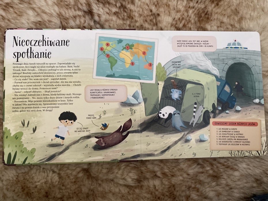 „Lasy świata. Pomóż zwierzakom wrócić do domów” to popularnonaukowa opowieść dostosowana do potrzeb dzieci w wieku przedszkolnym.