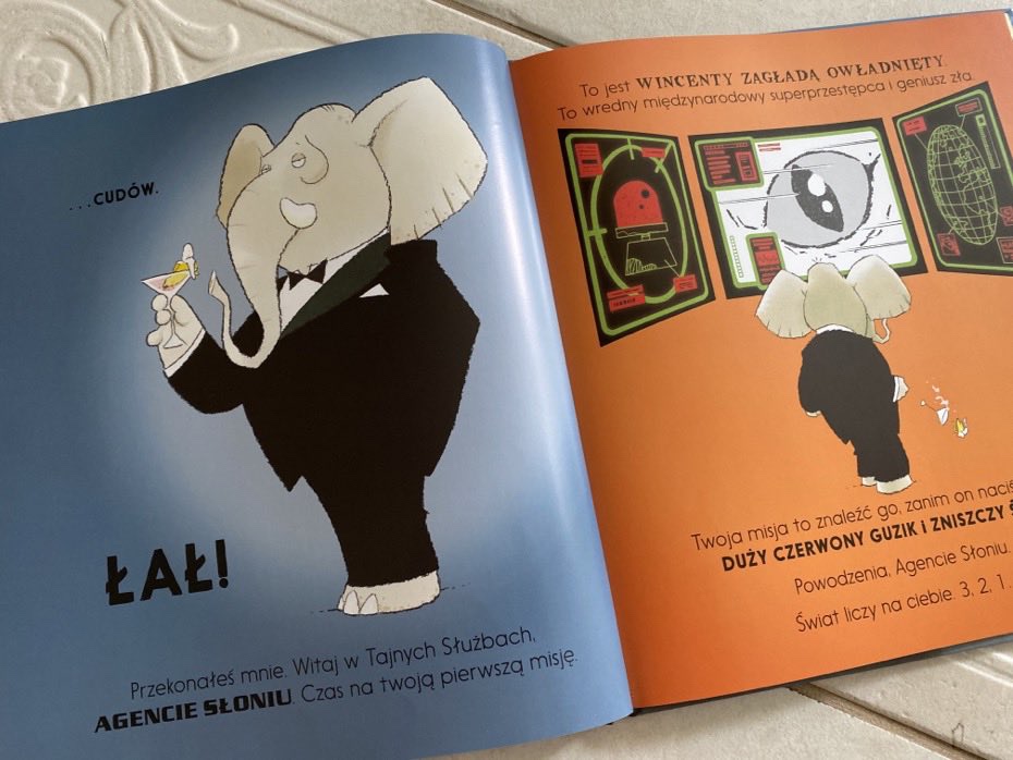 Uwaga wszyscy złoczyńcy, do akcji rusza nowy superszpieg: Agent Słoń 007! Super agent ma za zadanie znalezienie geniusza zła – Wincentego Zagłady i powstrzymanie go przed zniszczeniem świata. Przebiegły przestępca jest o krok od naciśnięcia czerwonego guzika, aby spowodować zagładę planety. Ciekawi Was jak słoń powstrzyma Wincentego Zagładę? Z pewnością spodoba się najmłodszym czytelnikom, dlatego odsyłam do lektury.