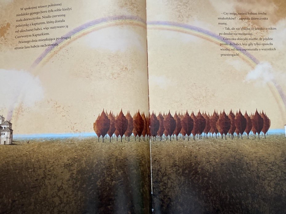 „Czerwony Kapturek” zwraca na siebie uwagę pięknymi ilustracjami. Książkę zakupiłam ze względu na czar obrazów, który tworzy zawartość. Morał z baśni przeznaczony jest dla dzieci: historia kończy się refleksją Kapturka, że już nigdy nie będzie zbaczać ze ścieżki i biegać po lesie bez pozwolenia mamy. Myślę, że czytanie dziecku takiej książki to najskuteczniejszy sposób wychowania człowieka z wyobraźnią, myślącego samodzielnie i mądrego, który będzie umiał sobie radzić ze zmianami w życiu. Polecam.