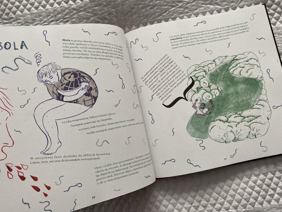 „Chore historie” to kompendium wiedzy o chorobach, które potrafią zmrozić krew w żyłach. Według mnie jest to ciekawa pozycja popularnonaukowa dla młodych odbiorców, która przekazuje wiele wartościowej, przydatnej w życiu wiedzy. Dodatkowym atutem książki jest jej nietypowa oprawa graficzna z mocno artystycznym wyrazem. Na pierwszy rzut oka ilustracje mogą się wydawać straszne, ale przyglądając się im bliżej, dopowiadają tekst. Książka zaskakuje, wyzwala ciekawość i zachęca do pogłębionych poszukiwań i dalszego samodzielnego studiowania rozmaitych przypadków w historii medycyny oraz śledzenia brawurowej ludzkiej walki z wszechobecnymi chorobami. Osobiście uważam, że jest to lektura obowiązkowa dla każdego. Uwielbiam takie pozycje, ponieważ wiedza zapisana na kartach utrwala się w się głęboko w głowie. Bardzo polecam.