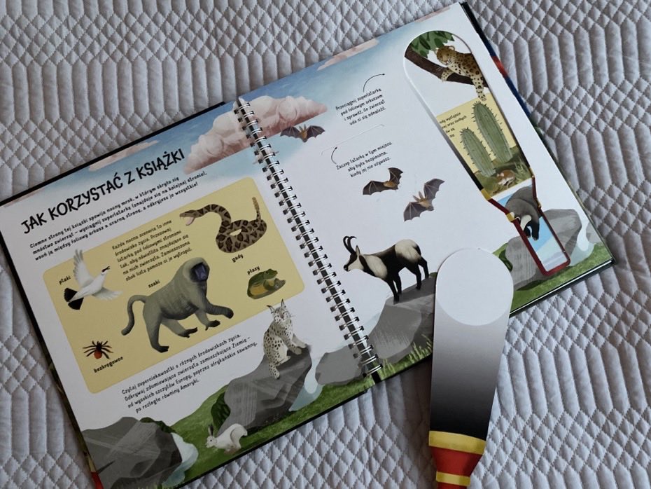 „Jak wygląda świat… po zmroku. Zwierzęta nocą” bardziej skierowana jest do najmłodszych odbiorców. Książka ma dość grube strony, a dodatkowo jest na spirali, co ułatwia korzystanie z niej. Myślę, że w prawie każdemu dziecku zabłyśnie oczko, kiedy poprzesuwa superlatarką po stronie. Ten bajer może skłonić wielu rodziców do zakupu książki i dobrze, ponieważ jest to czymś, co zajmuje dziecko na jakiś czas. Wspólne czytanie też niesie za sobą korzyści edukacyjne, a niewygórowana cena za książkę jest także na plusie. Polecamy.
