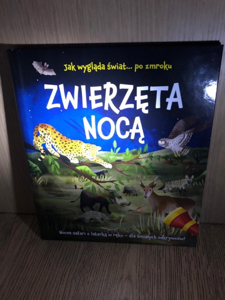 Jest to propozycja z niespodzianką. Dołączona tekturowa latarka pozwoli małemu badaczowi przyrody odkryć zwierzęta, które ukryły się w nocnym mroku. Superlatarkę wystarczy wsunąć między foliowy arkusz a czarną stronę, aby oczom ukazały się poukrywane sylwetki zwierzaków. Dziecko wraz z opiekunem może kolejno wyszukiwać 21 symboli lub losowo oglądać sobie ciekawe obrazy. Na końcu znajdziemy odpowiedzi na pytania, które stanowią zabawę z podopiecznym.