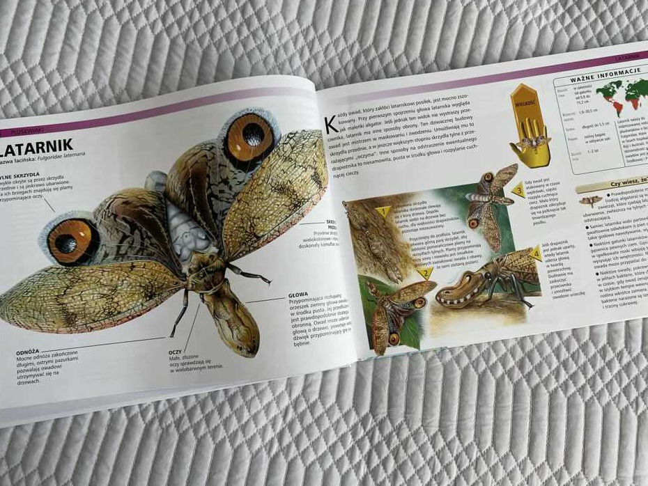 Ilustracje są oszałamiające, niezwykle realne graficznie. Tekst jest łatwy do zrozumienia dla młodego odbiorcy i zawiera wiele informacji o każdym robalu, w tym opisy zachowań i technik łowieckich. Każdy wpis ma pole informacyjne zawierające kluczowe fakty oraz liczby w celach informacyjnych i porównawczych.