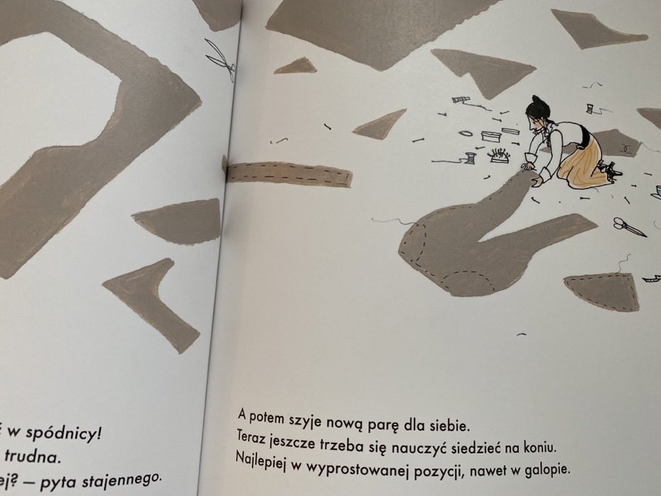 „COCO i jej mała czarna sukienka” to historia o kobiecie, która odmieniła życie pań, uwalniając je od przymusu noszenia z gorsetów, falbanek, koronek, sztywnych krynolin, dziwnych kapeluszy oraz innych niedogodności, a w zamian za to proponując proste, praktyczne i w pełni nowoczesne ubrania. Coco Chanel ubrała kobiety w spodnie i oczywiście w małą, czarną, najsłynniejszą sukienkę świata. Stworzyła także nieśmiertelne perfumy Chanel nr 5, które do dzisiaj są najbardziej popularnym zapachem na świecie. Jest to dość uproszczona i bardzo mocno skrótowa opowieść o najsłynniejszej projektantce mody. W lekturze dominują charakterystyczne ilustracje, w których przeważa czerń i biel, z domieszką stonowanych kolorów. Wcale nie są one ponure – wręcz przeciwnie – zostały naprawdę starannie dobrane. Jest to książka, która przekazuje najmłodszym, że zawsze warto podążać za marzeniami i być sobą. Polecam ją dla wszystkich małych i dużych wielbicieli mody.