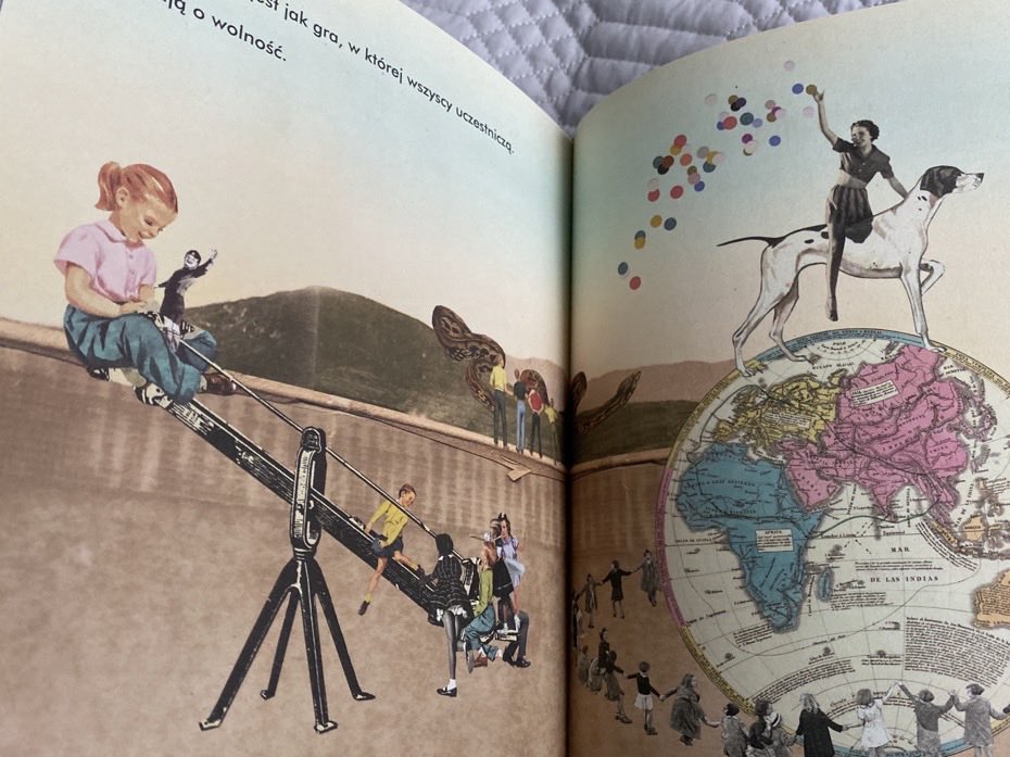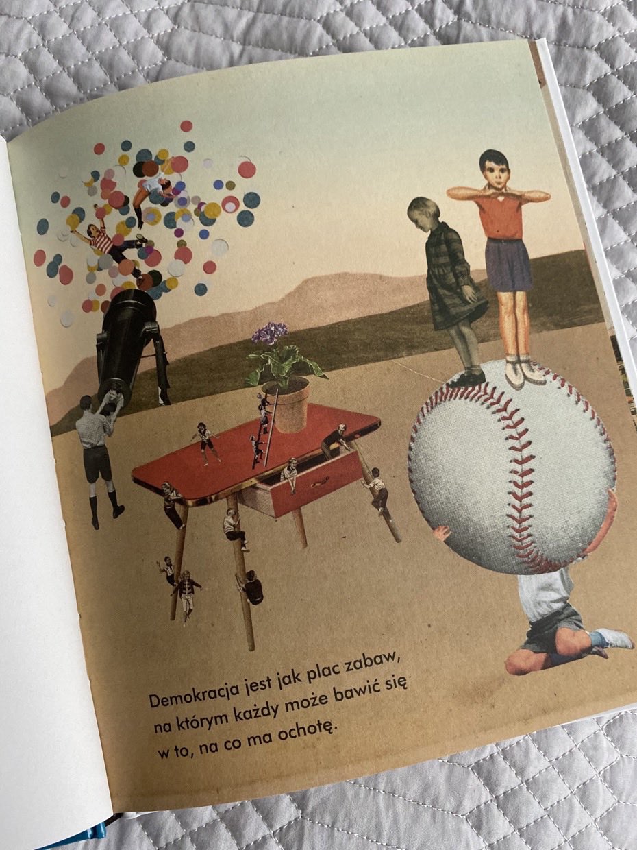 „Co to właściwie jest demokracja” to książka, która młodszym czytelnikom da wskazówki do zadawania ciekawych pytań, a tym starszym posłuży do odświeżenia pomysłów i potwierdzenia ich demokratycznych przekonań, co nie jest małą rzeczą. To świetna książka do rozmów i dyskusji na temat polityki i społeczeństwa. Uważam, że dzieci są przyszłością naszego społeczeństwa i muszą być świadome tego, gdzie jesteśmy dzisiaj, aby spróbować ulepszyć nasze jutro. Warto wspomnieć o nietypowej szafie graficznej, w której technika kolażu hołduje idei demokracji: to, co stare, spotyka się z tym, co nowe. Bezsens staje na równi z nieugiętą rzeczywistością, współwystępowanie różnych zdarzeń umiejscawia je w kontekście jednego świata, tak kolorowego i różnorakiego.