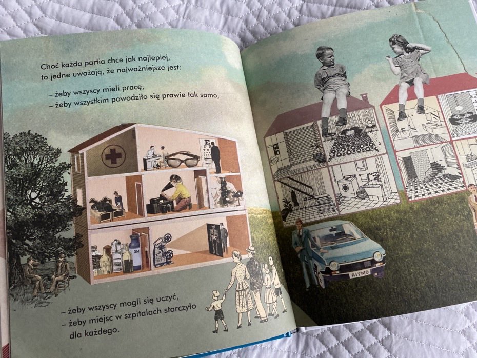 Książka w prosty i praktyczny sposób pokazuje maluchom podstawowe pojęcia dotyczące polityki. Młody czytelnik przeczyta jaki wpływ każdy obywatel ma na to, co dzieje w jego kraju i jak ważne jest to, aby był aktywny. Dowie się, czym są partie polityczne i jak mogą nas reprezentować, ale także czym są wybory i jak tworzą rządy. Czytając dalej, dzieci będą utwierdzone w przekonaniu, że obywatele mają prawo i obowiązek głosowania, tak aby rząd był najbardziej reprezentatywny dla ich społeczeństwa. Wszystko po to, aby być obywatelami świadomymi i zaangażowanymi w społeczeństwo, w którym żyją i w którym będą żyć. Pozycja podpowiada najmłodszym, że muszą być aktywną częścią zmian, które chcemy widzieć i że nasz udział w polityce jest niezbędny, aby jako społeczeństwo dążyć do lepszej przyszłości.