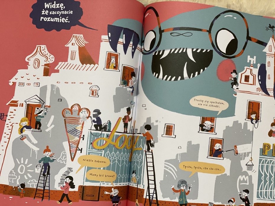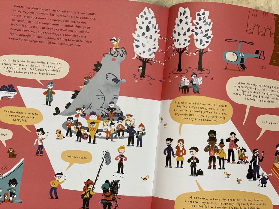 „Miasto Potwór” to edukacyjna, pełna humoru, dziecięca książka o przyjaznej przestrzeni miejskiej i wzajemnym szacunku.