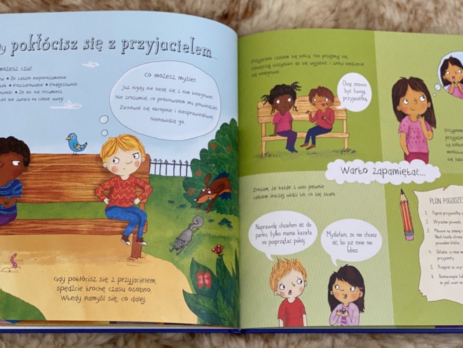 Na każdej ze stron czytelnik znajdzie opis innego powodu dziecięcego zmartwienia, a także uczucia, jakie towarzyszą tym chwilom i wskazówki, które pozwolą na odnalezienie wyjścia z każdej z tych sytuacji.