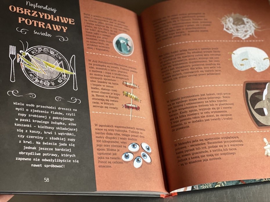 „Zjeść głowę cukru. Ilustrowana historia kuchni nie tylko dla dzieci” to inspirująca kulinarna podróż przez epoki, regiony i smaki, która jest ciekawa, zaskakująca i czasem …obrzydliwa.