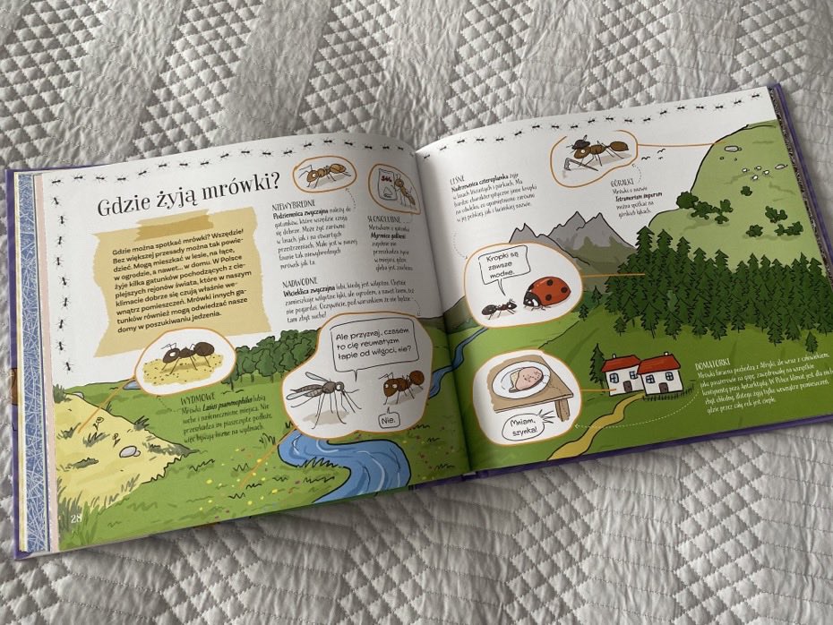 „Mrówki małe i duże” to książka z serii „Z przyrodniczej półeczki”, która daje najmłodszym w ciekawy i przystępny sposób solidną dawkę wiedzy oraz przybliża im niezwykłe życie małych stworzeń.