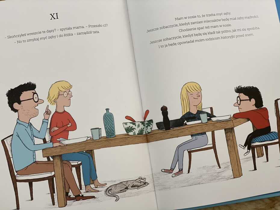 Młodzi czytelnicy poznają narratora, który ma niezwykle bujną wyobraźnię. Chłopiec opowiada nam sen o dorastaniu, ale także o tym, że gdy dorośnie, znów pragnie stać się małym.