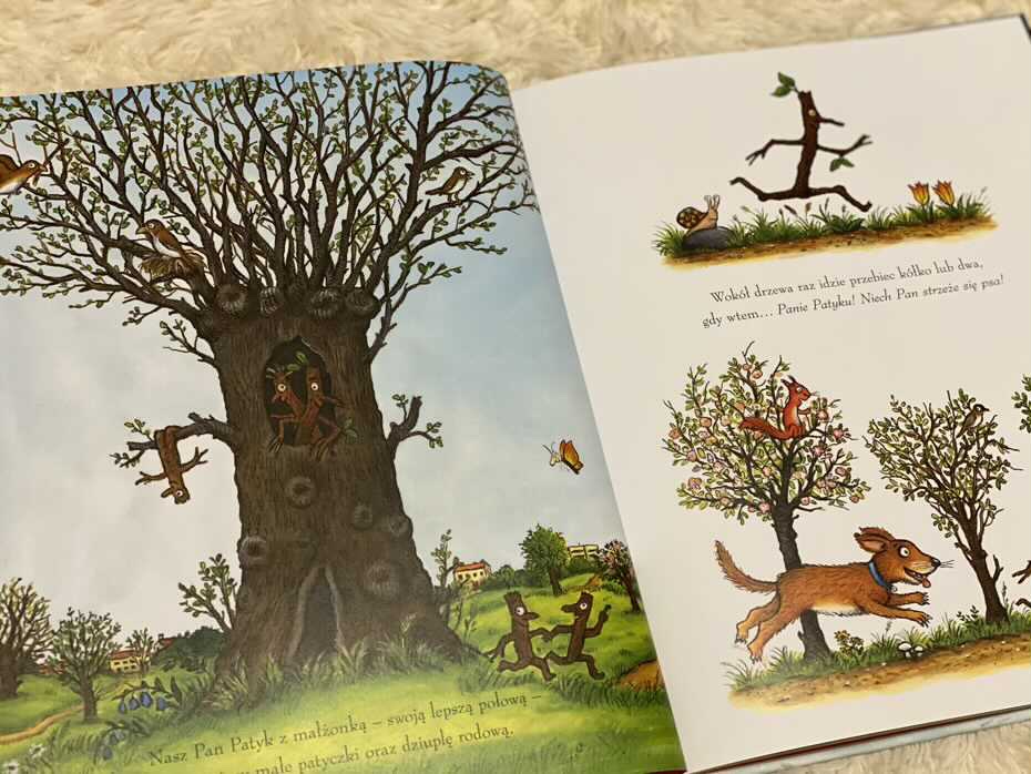 „Pan Patyk” to opowieść o przygodzie, odwadze i wspaniałej więzi rodzinnej, którą można się podzielić o każdej porze roku. Ta magiczna historia od samego początku urzeka dziecięcą wyobraźnię, ponieważ jest o przedmiocie, którym dzieci bawią się w parku, a nagle „on” zaczyna żyć własnym życiem. Po pierwszym przeczytaniu książka staje się natychmiastowym hitem, a wkrótce po niej, pojawiają się w domu prośby ponownego jej czytania! Ilustracje są kolorowe, jasne i pełne szczegółów. Otoczenie jest realistyczne, z ludźmi, zwierzętami i miejscami, które są znane dzieciom z innych książek autorki. Tytuł polecam fanom Donaldsona i Schefflera oraz każdemu, kto szuka wesołych, świątecznych pozycji z obrazkami.