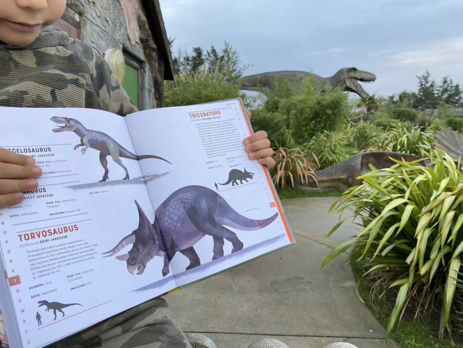 „Dinozaury od A do Z” to leksykon od wydawnictwa Kropka, wydany dla miłośników prehistorycznych gadów. Nietypowe ilustracje nie są próbą realistycznego sposobu prezentacji dinozaurów, ale artystycznym przetworzeniem dostępnej wiedzy naukowej na ich temat. Jak wynika z tytułu, prawdopodobnie nie jest to rodzaj książki, którą czytelnik miałby przeczytać za jednym razem, ale sprawdza się u dzieci kochających dinozaury, jest pełna kolorowych zdjęć i aktualnych informacji. Myślę, że każdy poważny miłośnik dinozaurów powinien mieć ten atlas w swojej kolekcji.