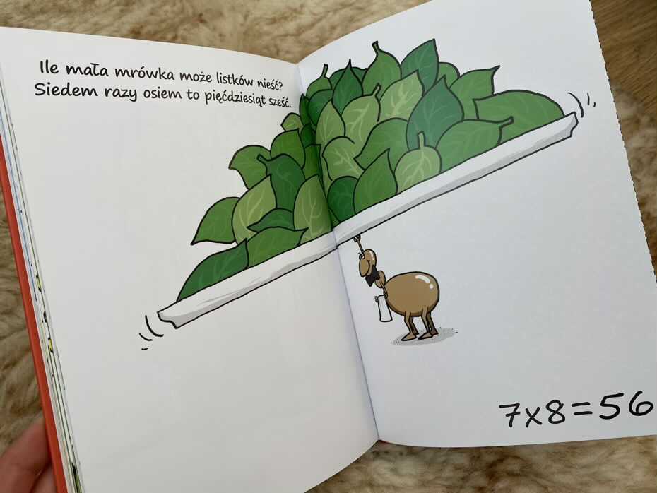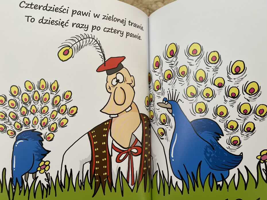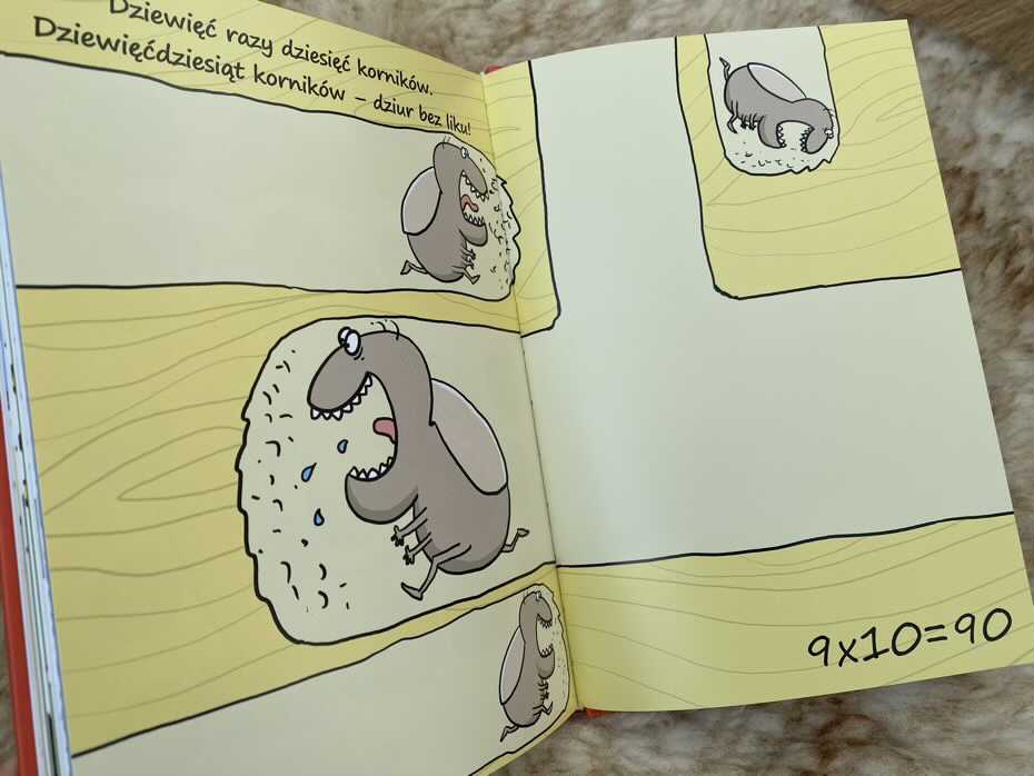 Dowcipne ilustracje to dobry sposób na to, aby zachęcić dziecko do nauki. Dwa wersy na każdej stronie tak szybko wpadają do głowy, że ciężko ich potem nie przywoływać w pamięci przy prostych rachunkach. Łatwe skojarzenia pozwalają małym uczniom szybko i bez wysiłku opanować tabliczkę mnożenia w zakresie do 100. Jednak, pomimo że rysunki są wesołe, według mnie nie wszystkie są odpowiednie do książki dla dzieci.