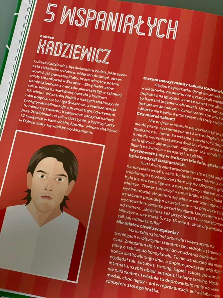 Na stronach lektury dziecko poznaje wybitnych zawodników każdej z dyscyplin. Przeczyta rozmowę z jednym z najlepszych polskich siatkarzy – Łukaszem Kadziewiczem. Dodatkowo zasięgnie informacji o tym, jakie musi mieć predyspozycje, żeby uprawiać dany sport i jaki sprzęt jest wymagany.