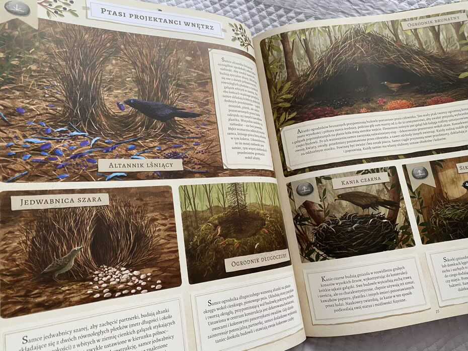 Książka zawiera mnóstwo interesujących i przydatnych informacji oraz jest pełna szczegółów i wiedzy, co gwarantuje, że każde jej przeglądanie jest inne, odkrywcze i zaskakuje na nowo. Na każdej stronie znajdujemy opis domu lub budowli danego zwierzęcia, piękne ilustracje i ciekawostki o konkretnym osobniku.