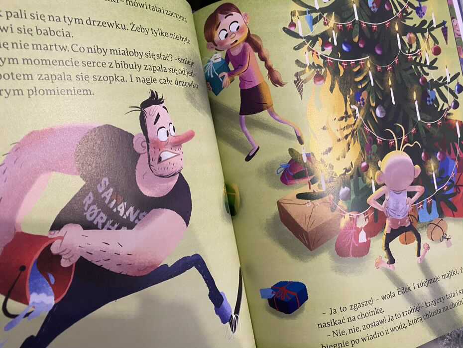„Gwiazdka z tatą Oli” to książka, która rozbawiała nas do łez. Ale Uwaga! Książka ujawnia, że Święty Mikołaj nie istnieje. Czytanie lektury jest na własne ryzyko.