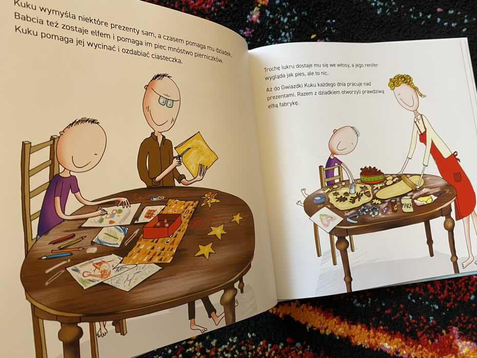 A gdy przyszła pora spania, Kuku zmartwił się, że w tym całym obdarowywaniu innych, zapomniał o najbliższych. Na co dziadkowie dumnie pocieszyli malca, że czas z nim jest ich największym prezentem.