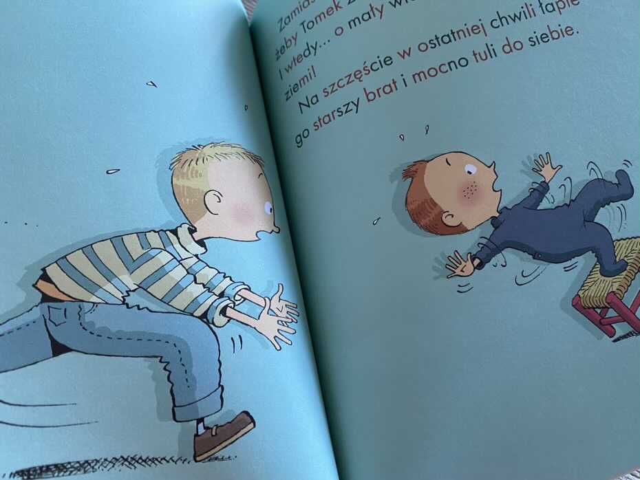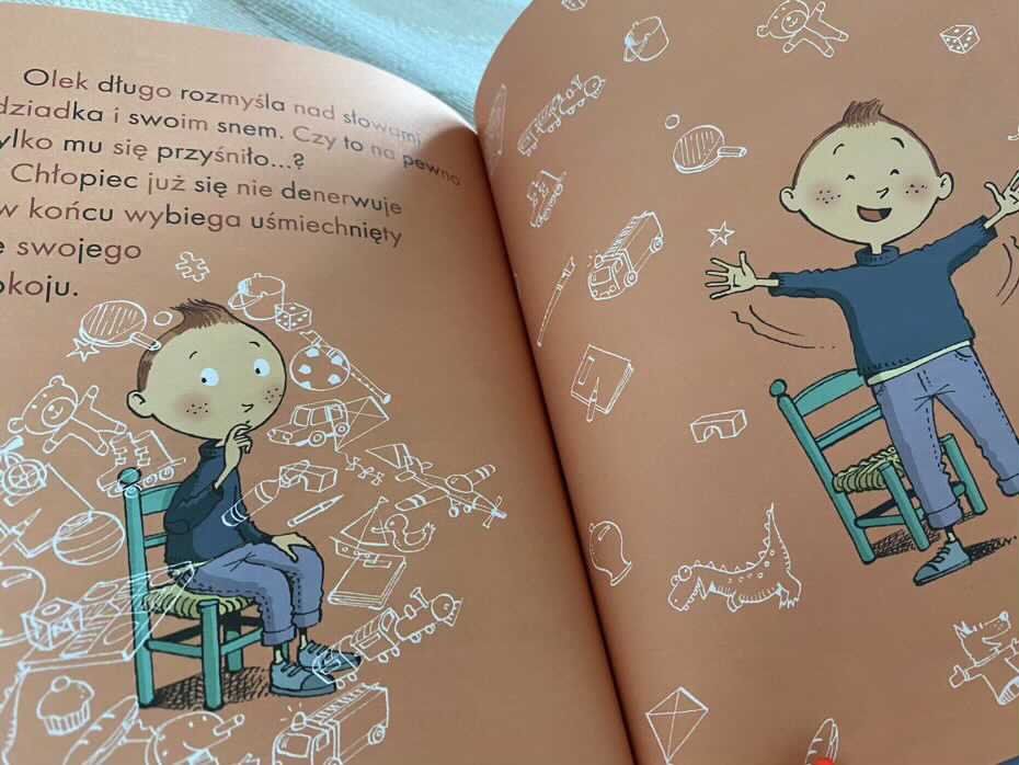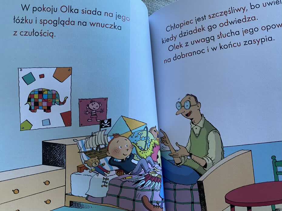Chłopiec uwielbia spędzać czas z dziadkiem, a w szczególności słuchać opowieści na dobranoc. Tak też się stało tego wieczora. Chłopiec zasnął i we śnie był młodszym bratem dla Tomka. Role braci się odwróciły, ale nie do końca. Starszy brat Tomek ratuje przed upadkiem bobasa Olka, a potem razem się bawią i wspólnie zasypią w jednym łóżku.