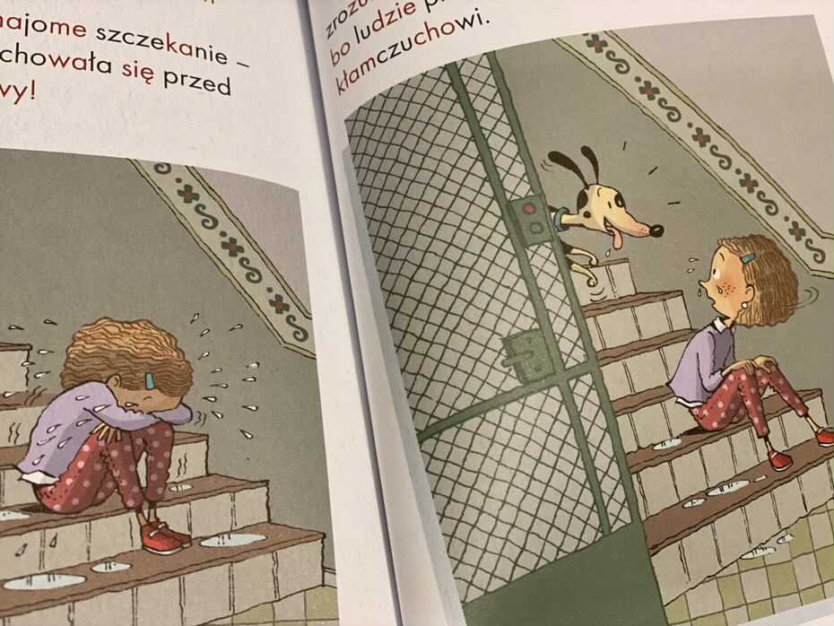 Kiedy piesek Plamka ucieka, przerażona Agatka przeszukuje każdy kąt, ale nikt nie zwraca na nią uwagi. Po tych wszystkich kłamstwach rodzina już jej nie wierzy, że czworonoga nie ma w domu. Wreszcie Plamka wychodzi z ukrycia, a do Agatki dociera, że kłamstwo nie popłaca i ludzie przestają wierzyć kłamczuszkowi.