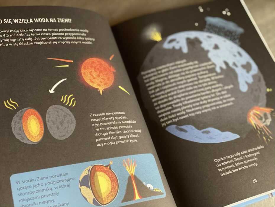 „Woda źródło życia. Wszystko o najważniejszej substancji na Ziemi” to niezwykle mądra i wartościowa pozycja dla czytelników małych i dużych. Książka w prosty i przystępny sposób podchodzi do tematu w tekście i na obrazach oraz wyjaśnia nam, że musimy używać wody ostrożnie i oszczędnie. Bardzo podobał mi się kontekst globalny i różnorodność wykorzystania wody, a także okoliczności niedoboru wody, które według mnie są łatwe do zrozumienia i dobrze poparte zdjęciami. Lektura jest wciągająca, pouczająca i ekscytująca, nie dało się od niej oderwać. Jest świetna dla każdego, kto interesuje się tematyką środowiska, ale także do pogłębiania w zrozumiały sposób skomplikowanych przedmiotów z nauczania specjalistycznego. Polecam.