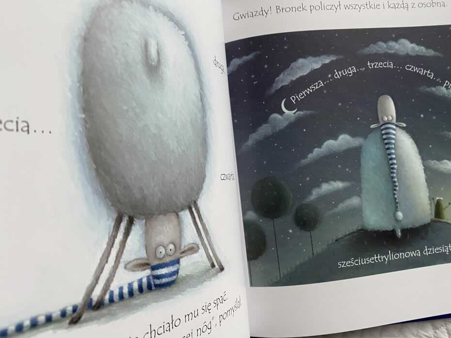 Dopiero po policzeniu sześciuset trylionów i dziesięciu gwiazd zmęczony baranek decyduje się ostatecznie policzyć owce. To załatwia sprawę i pozwala mu zapaść w głęboki sen. Kiedy inni wstają o poranku, baranek Bronek nadal śpi spokojnie.