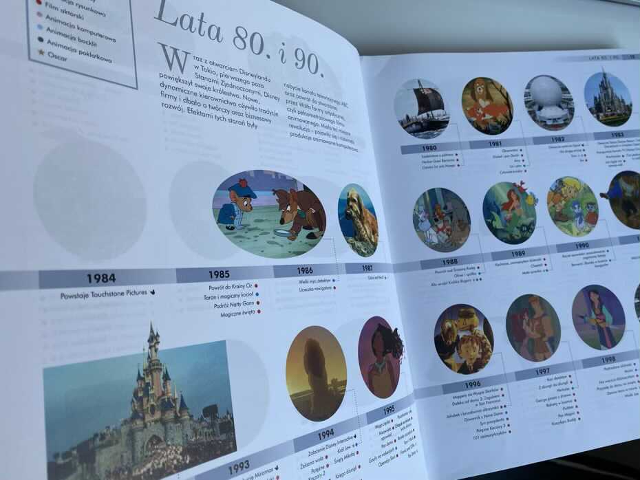 Dzięki poradnikowi będziemy mogli zajrzeć za kulisy najpopularniejszych filmów animowanych Disneya i dowiedzieć się, jak powstały. Będziemy śledzić całą historię Disneya, korzystając z osi czasu, w której zamieszczono zarówno najważniejsze wydarzenia w historii firmy, jak i lata premier poszczególnych filmów. Wspólnie będziemy podziwiać piękne grafiki koncepcyjne i szkice fabularne.