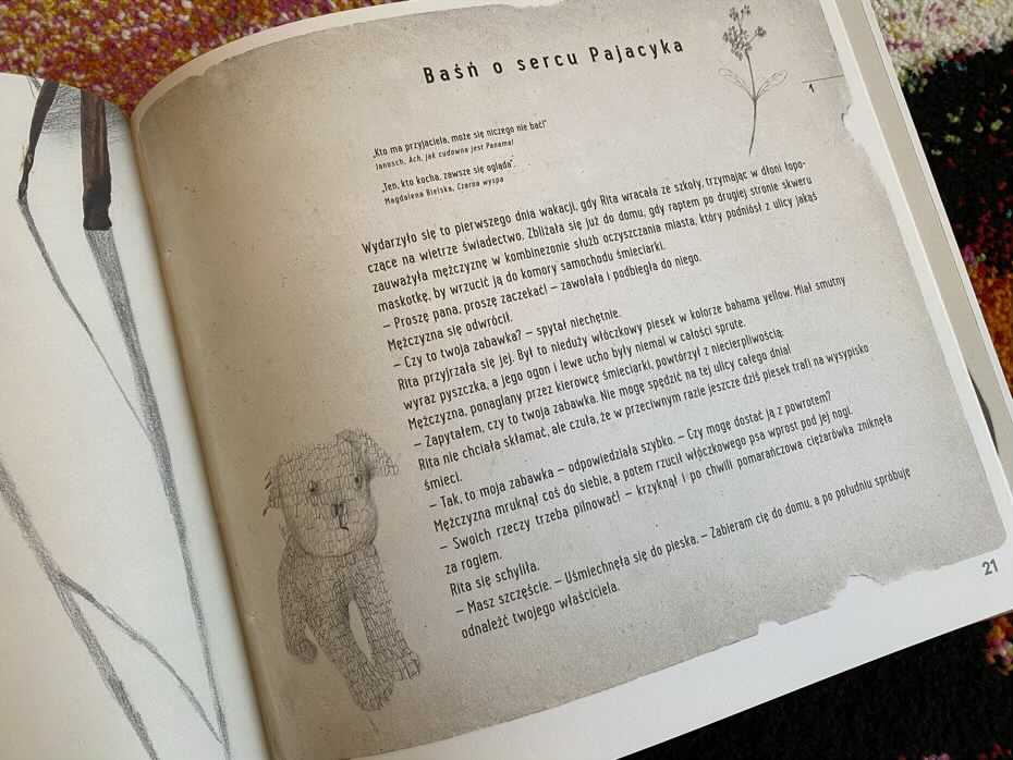 Ale to jeszcze nie koniec, ponieważ w historię o Niedźwiedziu wkomponowana jest poboczna „Baśń o sercu Pajacyka” oraz o „Czerwonej piłeczce”. Jest to tak zwana kompozycja szkatułkowa, dość rzadko wybierana przez pisarzy, tym bardziej w literaturze dziecięcej. Autor przenosi nas z głównego wątku do historii małej dziewczynki, która znajduje się w Królestwie Porzuconych Zabawek, by tam również odbyć swą ważną misję. Rita za wszelką cenę będzie pragnęła odnaleźć serce drewnianego króla zabawek, ale czy jej się uda? Wplecenie melancholijnej i smutnej opowieści o małej Ricie, wprowadza w całą baśń wiele napięcia i oczekiwania, potęgującego zaciekawienie młodego odbiorcy.