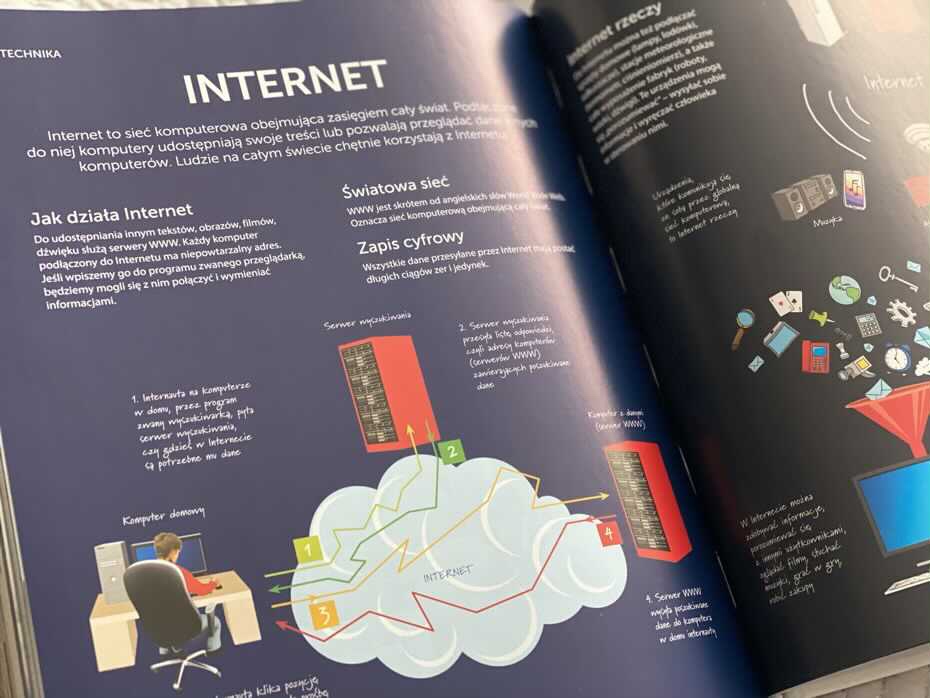 „Encyklopedia dla dzieci” to popularnonaukowa książka dla młodych czytelników, obejmująca szeroki zakres tematów, od sztuki i zwierząt po nowe technologie. Ta fascynująca encyklopedia dla dzieci zawiera prosty, łatwy do odczytania tekst i żywe, szczegółowe ilustracje, pomagające młodym czytelnikom zdobywać wiedzę na wiele różnych tematów. Według mnie jest to ważna pozycja w każdym domu z dzieckiem. Polecam.