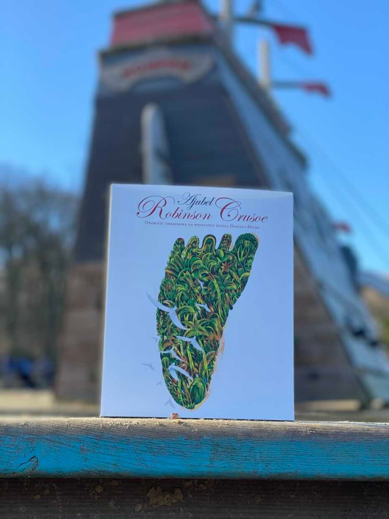 „Robinson Crusoe. Opowieść obrazkowa na podstawie dzieła Danie la Defoe” to książka obrazkowa, która prezentuje formalne spojrzenie na oryginalne dzieło, wykorzystując opcje oferowane przez naszą kulturę wizualną.