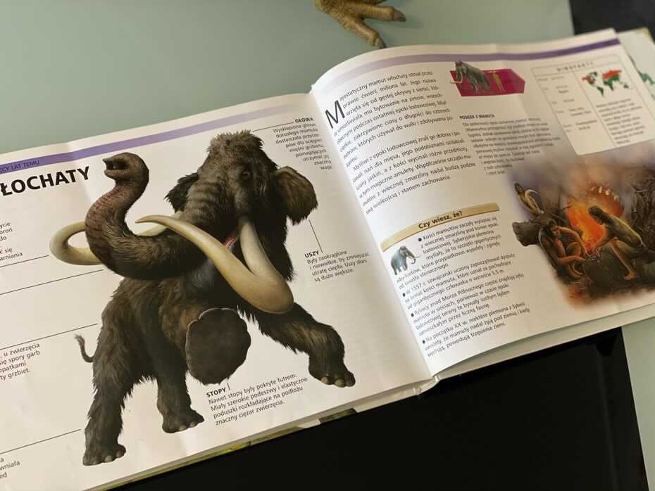 Atlas przedstawia także niektóre z innych, najbardziej przerażających stworzeń prehistorycznego świata sprzed i po dinozaurach, od mikroskopijnych trylobitów po ogromne ptaki drapieżne, od gigantycznych papug po koty szablozębne i mamuta włochatego.