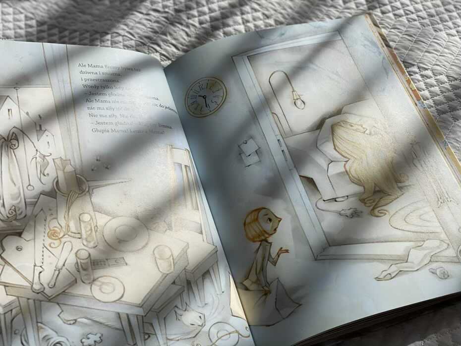 „Włosy mamy” to prosta, wypełniona metaforą historia o narastającym chaosie w uczuciach dziecka, które samo próbuje zrozumieć coś, co jest dla niego niepojęte. Samo działa, by móc odzyskać spokój i poczucie bezpieczeństwa. Książka pokazuje, że rodzice mogą mieć chwile, kiedy nie ma ich przy dziecku tak bardzo, jak ono by tego oczekiwało. Dorośli mogą nie zawsze być szczęśliwi i chętni do zaspokojenia każdej potrzeby najmłodszych. Lektura jest doskonałym przykładem zmiany, którą można zauważyć w literaturze dziecięcej, kiedy to mały człowiek opiekuje się rodzicem, a nie odwrotnie. Według mnie jest to bardzo potrzebna książka w dobie ogromnej presji społecznej na bycie perfekcyjną mamą: pracującą, organizującą dzieciom aktywnie czas, ogarniającą dom i robiącą nie-wiadomo-co-jeszcze. Pokazuje tę drugą stronę macierzyństwa – przemęczenie i depresję oraz jak taki stan mogą postrzegać dzieci. Szczerze polecam.