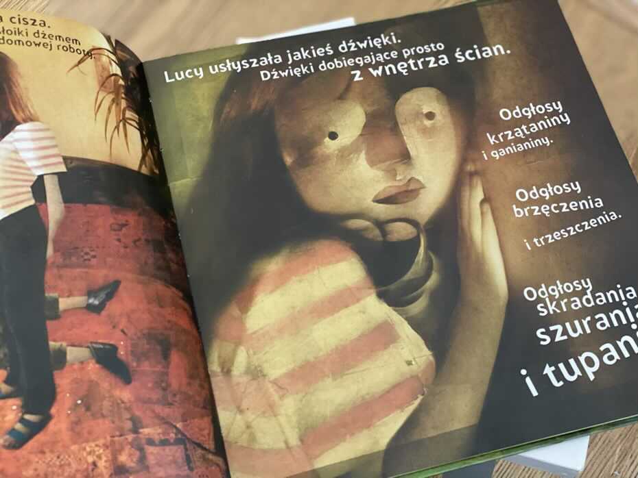 „Wilki w ścianach” to książka z figlarnym humorem, w której tematem historii jest pokonanie strachu. Każde dziecko boi się rzeczy, które pojawiają się w nocy, a przeczytanie tej lektury pokazuje, że strach można rzeczywiście przezwyciężyć. Młody czytelnik ma bujną wyobraźnię i każdy szmer utożsamia z jakimś potworem. Tak samo robi Lucy – słysząc nocne odgłosy, uznaje, że w ścianach są wilki. Połączenie lekko mrocznych, ale klimatycznych, dwu- i trójwymiarowych arcymistrzowskich ilustracji oraz zmieszanie z kolażem przedmiotów ze świata rzeczywistego, tworzy obraz rzeczywistości w tym fantastycznym świecie. Według mnie jest to ciekawa pozycja do przeczytania dla osób lubiących nietypowe, zwariowane historie. Polecam.